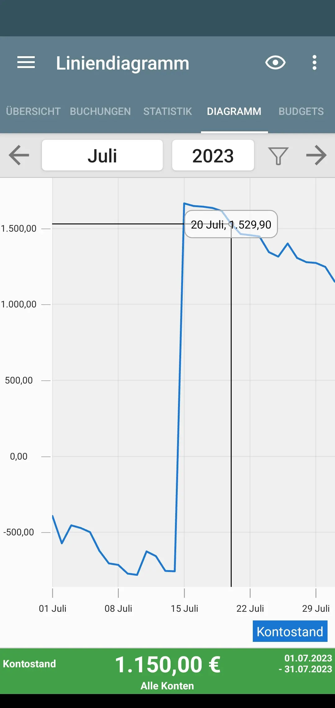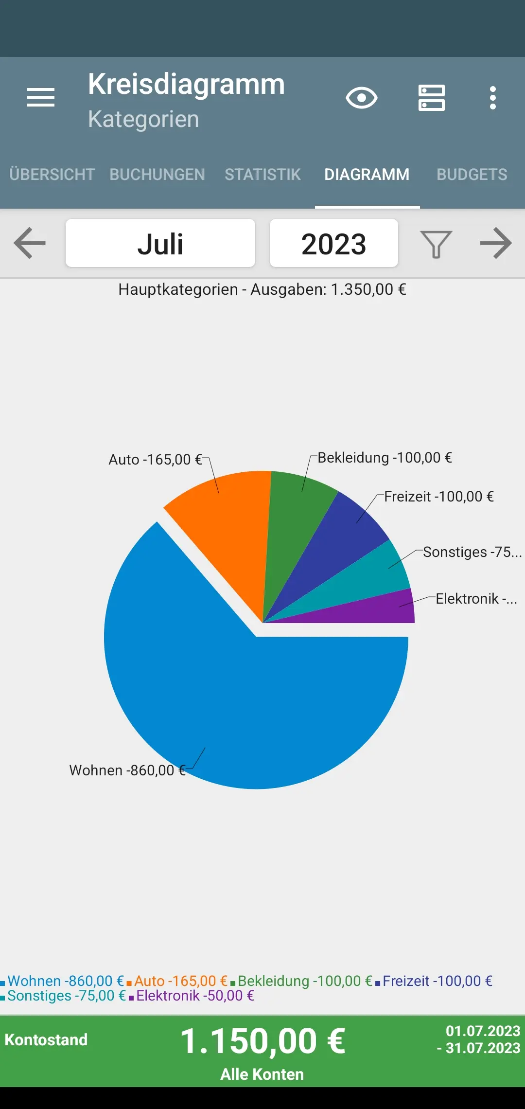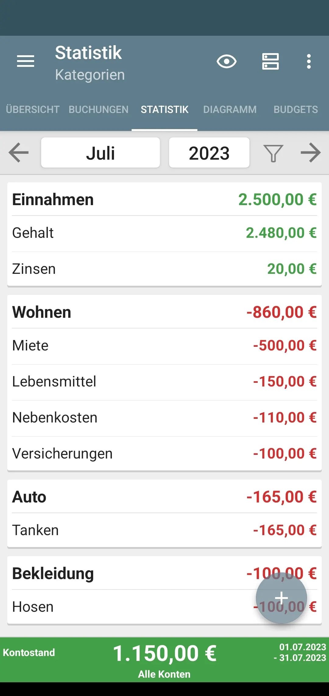Übersichtliche Statistiken: Visuelle Darstellung der Ausgaben: Diagramme oder Grafiken sind nützlich, aber eine reine Zahlenübersicht reicht oft aus.
